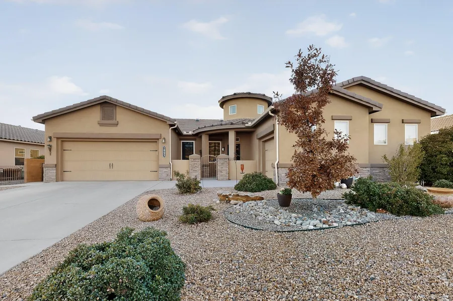 Welcome to this stunning singlestory home in the Cabezon community! Thoughtfully maintained and upgraded, this home offers both comfort and convenience in an unbeatable location near Intel, Rust Hospital, shopping, restaurants, and schools. Nearly all S/S appliances are less than 3 years old (wall oven excluded). Tankless water heater. Quartz countertops, and backsplash elevate the open kitchen. Natural light solar tubes in the kitchen fill the space with beautiful daylight and a soft glow at night. All blinds stay, plus a custom metal screen door and security screens with UV protection on all windows and the sliding door. Premium lot backing directly to the walking trails of the linear park. Private backyard with tall block fence with no back neighbors. Come take a look!