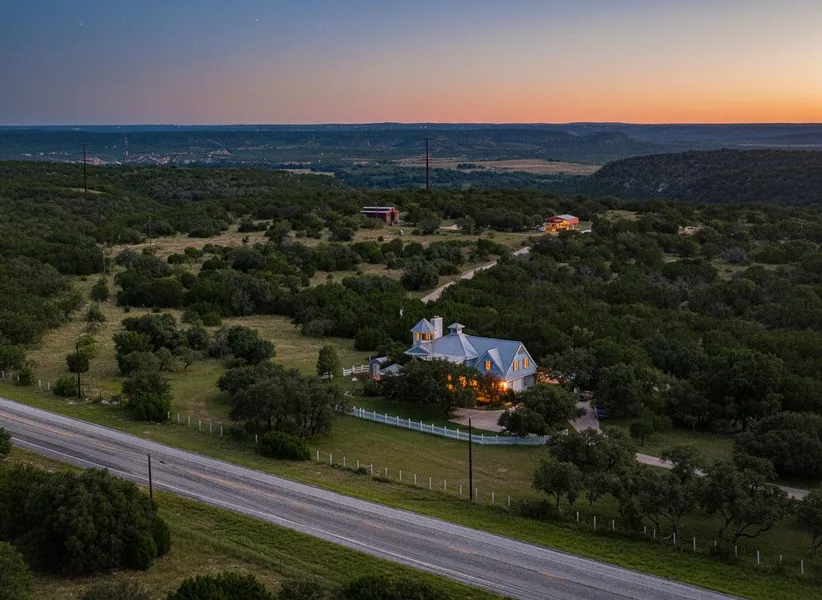 The ranch is located off Loop 481 in Junction, Texas, within Junction ISD. It sits less than five miles from shopping, restaurants, and I-10 access. South Llano River State Park and both branches of the Llano River are nearby, adding fishing, boating, and camping opportunities. The property is 50 miles from Fredericksburg, 100 miles from San Antonio International Airport, and also benefits from a local private airport.