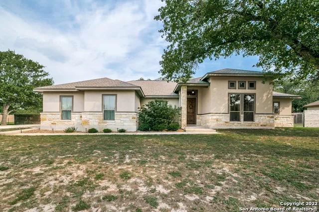 WOW! Country living at its finest! Relax with your favorite beverage on the patio of this beautiful 4 bedroom, 2 bath Texas style ranch home sitting on 1.4 acres with beautiful mature trees! Property is partially fenced with space for workshop or RV. A portion of the property is uncleared to enjoy a nature country setting. Tranquil neighborhood with NO HOA and in La Vernia ISD school district. New hot water heater installed in September 2021. Open floor plan with high ceilings and stunning engineered hardwood floors, gorgeous kitchen with granite counters and island seating. Custom wood soft close cabinets can be found through out the home. Stainless steel appliances with the refrigerator conveying! Upgraded lighting and fixtures. Beautiful fireplace will keep you warm and cozy through those chilly nights. Dining space has a country view of the back yard. Spacious bedrooms all include walk in closets The owners suite boasts a beautiful walk-in shower, and has his and hers vanities. Separate closets for the owners give you plenty of personal storage space! Roof has Radiant Barrier decking. Spacious 2 car garage has room for a freezer. Hurry, this is a GEM that will not last long!