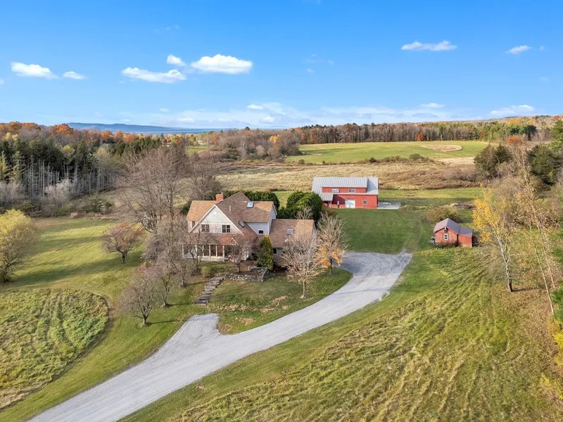 Escape to your own private retreat less than a mile from the beautiful shores of Charlotte Beach on Lake Champlain! This 5-bedroom home, set on 45 acres, brings together modern comfort & endless possibilities. Nature lovers will enjoy exploring recreational trails or simply soaking in the open land and peaceful surroundings. The property is thoughtfully landscaped, with picturesque stone walls, an inner hedged garden, and an in-ground pool. Upon entering, the layout welcomes you with abundant natural light and an open floor plan. The first-floor features two cozy living rooms, complete with a fireplace and wood stove, a formal dining room ideal for entertaining, and an open kitchen leading to a breakfast area with vaulted ceilings. An all-season porch offers the perfect spot to enjoy the scenery year-round. Upstairs, discover a private suite with a contemporary full bath and spacious walk-in closets, along with 3 additional bedrooms and a full bath, providing ample room for family and guests. A practical mudroom entry is located off the garage and the lower level offers a practical finished room for gatherings, and generous storage space. An additional bedroom and bath above the garage provide the perfect setup for guests or a private office. A barn on the property is ideal for hobbyists, ready to support your passions-whether it's a workshop, studio, or a place for animals. This contemporary home balances comfort and the beauty of the outdoors.