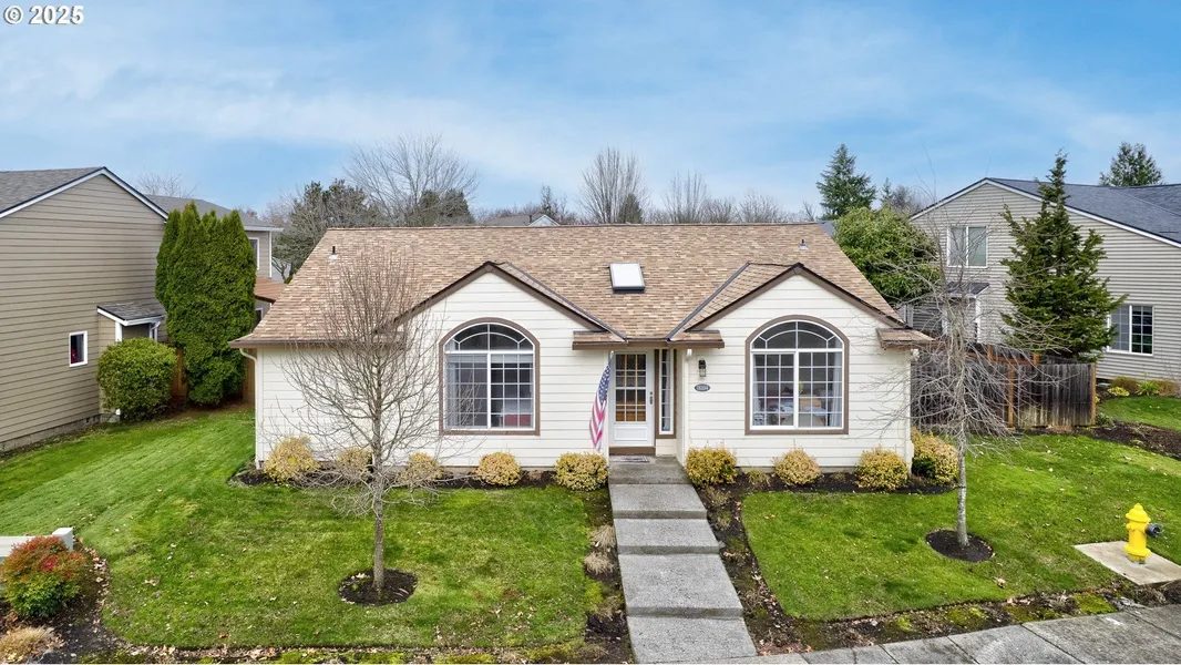 Open Sunday 12-2. Spacious one-level home with vaulted ceilings throughout and easy-care landscaping. This well-maintained property offers a bright and open great room floor plan, anchored by a cozy fireplace-perfect for entertaining or relaxing evenings at home. The large kitchen features an abundance of cabinetry, ideal for cooking, hosting, or everyday living. Skylights were replaced when the roof was replaced 3years ago, enhancing the natural light throughout the home. Major systems have been thoughtfully updated, including a roof approximately 3 years old, A/C approximately 3 years old, a landscape sprinkler system installed 3 years ago, and a hot water heater replaced in 2015. Additional features include storage above the garage and a convenient laundry room with a door leading to the garage. The hot tub and refrigerator are included. Ideally situated directly across from a vibrant community park offering a playground, basketball courts, and walking paths, this home combines comfort, convenience, and a prime location.