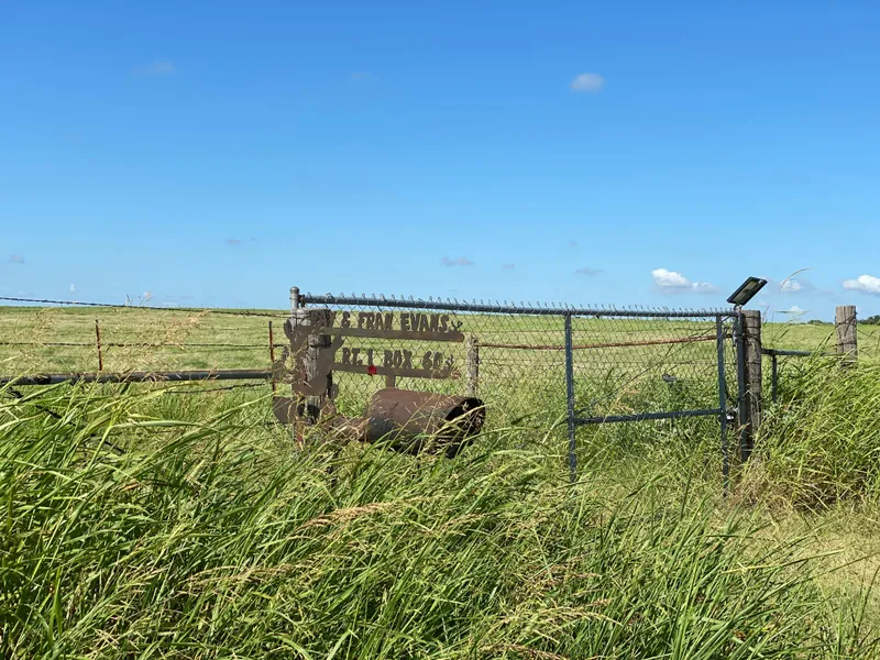 Hwy 171 from Byers - approx. 2 miles. Take Valentine School Rd. to North. It crosses Raymond Evans Rd. Turn right. Second place on right. Has Raymond L Evans mail box at entry.
