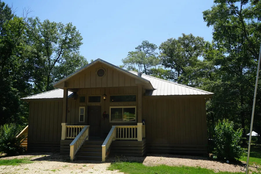 This property features a beautiful 2-bedroom board and batten siding home with heart pine floors and new tile in the kitchen. The house has a large covered porch overlooking a 3-acre lake and a large open deck for grilling.