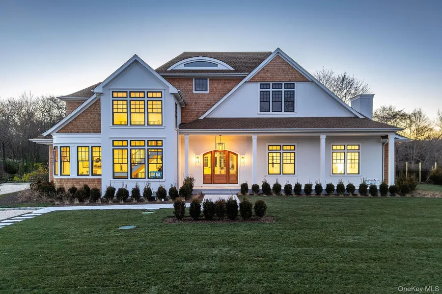 Welcome to the Laurel Collection by Marrcon. New Luxury Construction located in the heart of the North Fork's Town of Southold. This home is situated on .80 acres & boasts 4,237SF of living space with 4 bedrooms and 4.5 baths and combines clean lines of modern design with the allure of North Fork chic. This home comes with Authentic Western Red Cedar Shingle siding and a stucco accented stair tower that makes the grand foyer rise into the second story. There are 9ft high ceilings on the first and second floors in addition to vaulted and coffered ceiling details with 8-1/2" white oak floors throughout. Enjoy two bedrooms on the first-floor which includes a primary bedroom with a generous walk-in closet and private access to the masonry patio opening to the backyard pool and garden. The great room contains a 46" linear gas fireplace and is open to the well-appointed kitchen which includes custom inset cabinets, marble countertops and high-end GE Monogram appliances with a wet bar. The second floor has two bedrooms both ensuite with large tile and custom vanities. The second floor also contains a beautiful family room and a large laundry room with custom cabinetry and a sink. The basement can be finished to suit which includes 9' ceilings. Enjoy the incredible entertainment ready backyard featuring a 20X40' heated gunite saltwater pool, including automatic pool cover with a Napa Stone marble patio. The secluded backyard includes custom designed landscaping and masonry by our Landscape Architect.