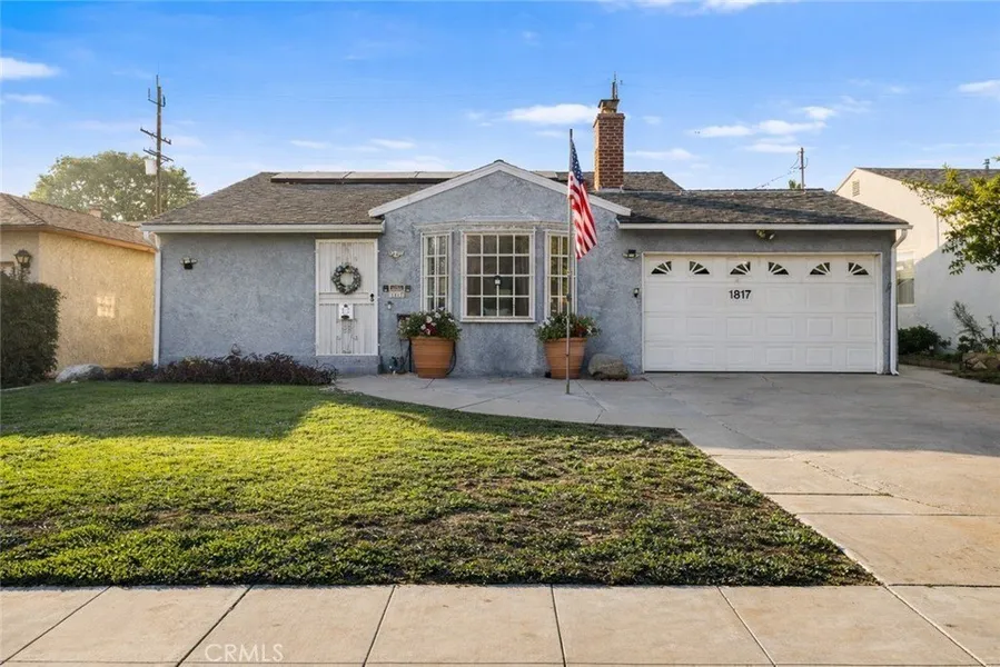 Well cared for and thoughtfully maintained, this lovely 2-bedroom, 1-bath residence offers a functional, well-designed floor plan along with valuable BUR4 zoning, presenting an excellent opportunity for both homeowners and investors. The inviting living room features Architectural Spanish-style plaster fireplace with arched brick detail. Sound-insulated windows throughout the home and City-completed acoustic improvements enhance interior comfort and create a peaceful living environment. The spacious kitchen opens seamlessly to a generously sized dining area, offering ample cabinetry and counter space ideal for everyday living and entertaining. Both bedrooms are well proportioned and include large, deep closets and ORIGINAL HARDWOOD FLOORS are located beneath the existing carpet in both bedrooms. A lovely family room with French doors opens to a very good-sized backyard with a covered patio and grassy area, offering excellent space for gatherings, play, gardening, and future outdoor enhancements. Additional highlights include central heat and air, 200-amp Electrical panel, leased solar panels, Recessed Lighting, Ceiling Fans, an attached spacious garage, abundant interior storage, and pride of ownership evident throughout. Conveniently located near studios, shopping, dining, studios and major routes, this property combines comfort, versatility, and long-term potential in a desirable Burbank location.