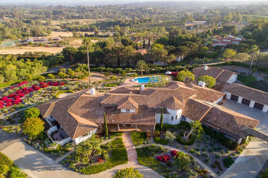 This floor plan is so versatile and can accommodate a variety of family needs. The master wing includes a separate office space with a fireplace in the master suite, a second laundry room, and a beautiful secondary bedroom suite with a private garden patio. The upstairs has three suites with walk-in closets and view balconies, plus a wide hallway that hosts a coffee bar and reading nook. There are two bedrooms off the main living areas, both with en-suite bathrooms, and a main laundry room near the kitchen. A butlers pantry walk-in storage connects the formal dining to the gourmet chefs kitchen with a center island, breakfast bar, dining area, and is completely opened to the family room with a fireplace. A third bay of the attached garage was converted to living space and would be great as a hobby room, playroom, dance studio, billiards room, or gym so many options! Enjoy easy indoor/outdoor living multiple covered patios and a built-in BBQ area with stovetop burners, sink, and mini-frig. In addition to the long driveway able to accommodate multiple vehicles, there are two attached garage spaces and a three-car detached garage. Set at the end of a cul-de-sac, this stunning home offers the best of Rancho Santa Fe living!