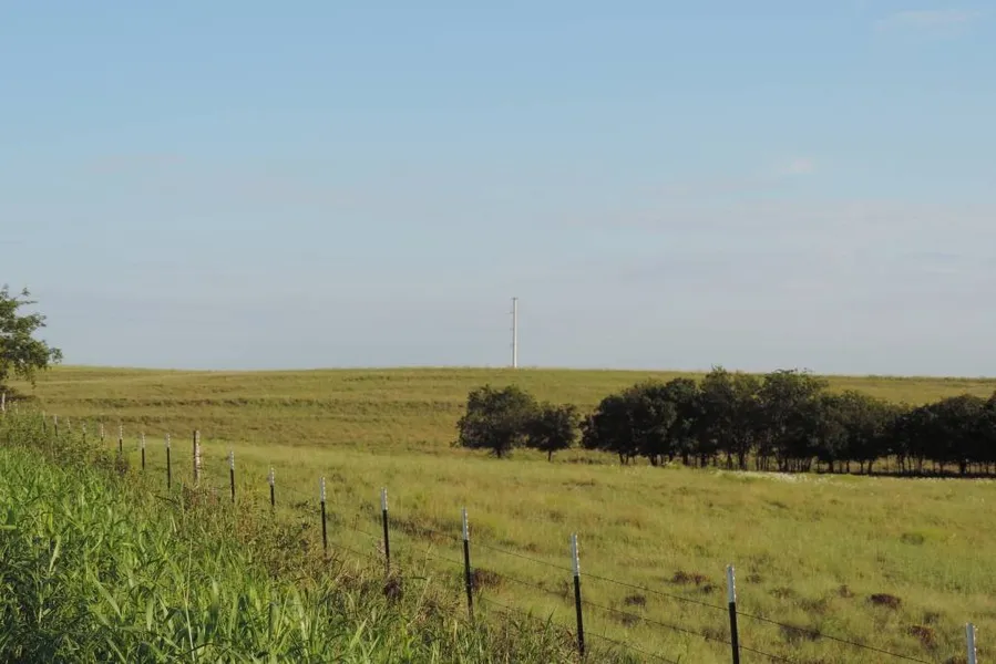 The ranch is 95% open with excellent native grasses including little bluestem, side-oats grama and common bermuda. It was sprayed for weeds with Grazon in the spring and is in great grazing shape. The Seller reports that the place carries twenty-five pair in a typical year, requiring supplemental hay feeding only two months per year. The ranch is fenced and cross-fenced into three pastures, each with a water source for livestock and some tree cover for loafing on hot days in the summer. Hill County Road (HCR) 3214 borders the ranch along it’s western fence line. There are two access points off of HCR 3214, one in the southwest corner and the other in the northwest corner. The highest point on the ranch is at the northwest gate, at 634’, while the lowest point is in the slough at the southwest corner at 551’. The soils on the ranch consist of Ferris-Heiden complex, Houston black clay and Ferris clay, all well suited for pasture and wildlife. There has been some erosion damage due to heavy rain and runoff on the property. (See MapRight map and pics of small tank in East pasture and below large tank in South pasture) The Seller has enrolled the ranch in the Emergency Conservation Program(ECP), which helps farmers and ranchers to repair damage to their land caused by natural disasters and to help put in place methods for water conservation during severe drought. There is a high voltage transmission line that crosses the property on the extreme north end. (See MapRight map and pics from northwest corner of property)
