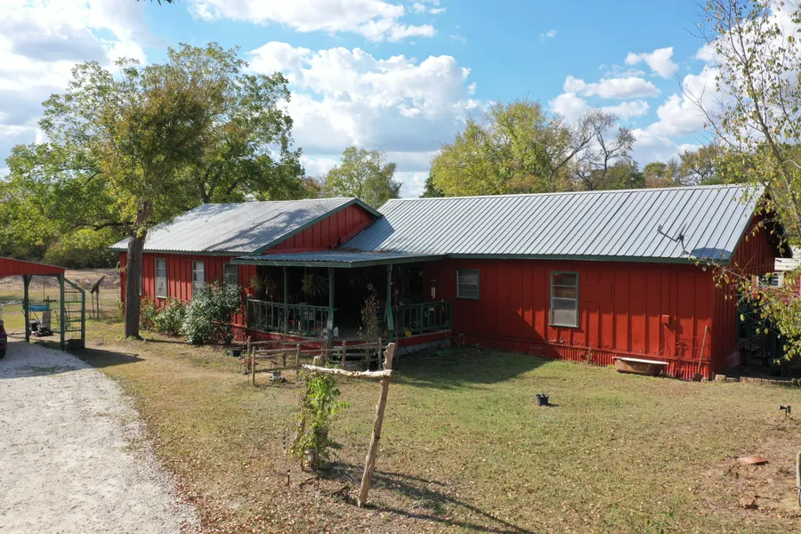 Adorable farmhouse in secluded Farrar community approximately 150 miles N of Houston is the perfect peaceful setting that you are looking for. 3 bedrooms, 2 baths, and 2 large living rooms with decks on three sides with two being covered create a cozy & comfortable space both inside and out! A lovely renovated island kitchen boasts double ovens, gas cooktop, microwave, dishwasher, SxS refrigerator, and upright freezer. There is plenty of space to entertain guests in this open concept kitchen & dining room plus room for your china cabinet & still be able to keep all the leaves in your favorite table! There is a living room on each end of the home. Primary bedroom with ensuite bath, shower stall & walk-in closet. Bedrooms 2 & 3 have walk-in closets and ceiling fans. The laundry room is connected to the 2nd bath with tub & shower combo. Washer & dryer are included. A new aerobic septic system was just installed & the home uses propane for both the heat & water heater. Outside you have chicken coops, a large storage bldg with electricity and 2 carports. A recently added pond will be a beautiful addition to the yard as soon as it rains again!!
