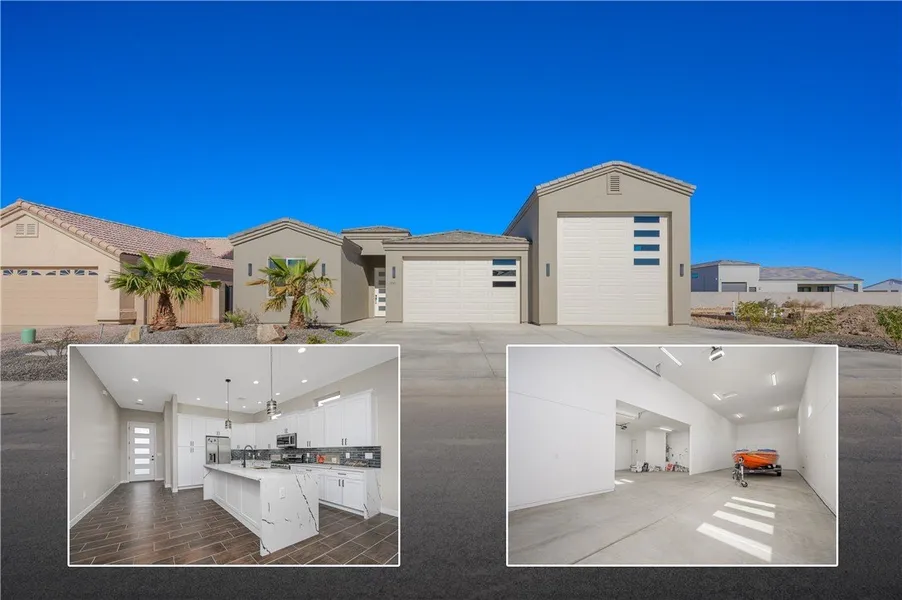 Welcome to 1821 Desert Bloom Drive, a recently built semi-custom home in the highly sought-after Cimmaron Lakes community in Mohave Valley, AZ. This stunning 2-bedroom, 2-bathroom home features an expansive open-concept living area, perfect for entertaining and everyday living. The spacious kitchen boasts sleek stainless steel appliances, ample cabinetry, and modern finishes that will delight any home chef. For those with a passion for outdoor adventure, this property offers a nearly 60-foot RV garage and an additional boat deep garage, providing plenty of space for your toys. Enjoy the large backyard with a covered patio, ideal for relaxing or hosting friends and family. As an added bonus, access to the Willow Valley Association Marina is available for a fee, giving you the perfect launch point for enjoying the Colorado River and the surrounding area. Don't miss the opportunity to make this beautiful home your own!