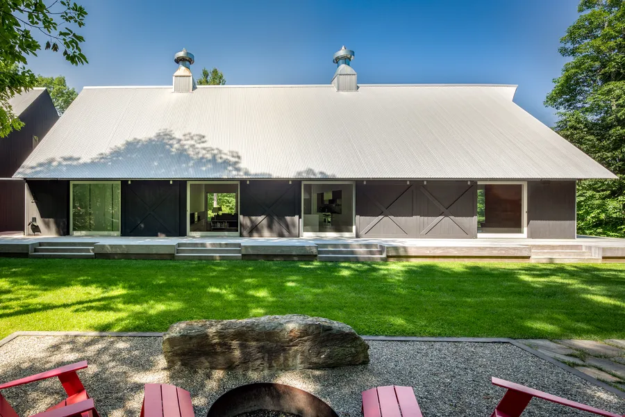 A 4 bedroom modern house offering inside and outside living. Smartly finished and built with top of the line materials. Secluded on 49 glorious acres. A 7.6 acre crystal clear lake for swimming and sailing in summer and skating in the winter with a large picnic area complete with firepit for year round use. Wide decks surround the house only a few steps to the outside living/dining area complete with stone grill/pizza oven and firepit in a forest clearing. Internet access via dedicated enterprise level optical fiber. Initial preparation for tennis and basketball court is complete. 15 minutes from vibrant Hudson and less than 2 hours’ drive from New York City. Close to a variety of cultural programs at Bard College, music at Tanglewood, dance at Jacob’s Pillow and skiing at Catamount. The Hudson Valley is a sportsman’s paradise. All within easy distance.