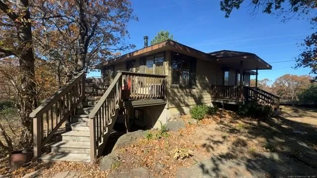 Nestled on 1+acre m/l of scenic land, this spacious two-story custom built home offers the perfect blend of comfort and country living — ideal for animal and garden enthusiasts. The upper level features an open layout with 2 bedrooms, 2 full baths, full kitchen, fireplace, living room, and dining room, all flowing seamlessly to a charming wrap-around balcony.