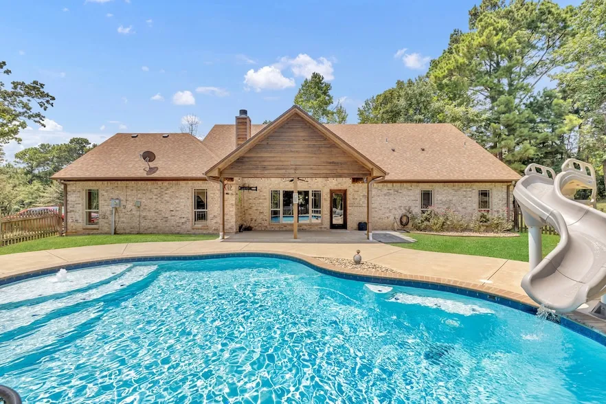 Welcome to this charming 3-bedroom, 2-bath home offering 1,950 sq. ft. of comfortable living in desirable East Shores Estates at beautiful Lake Tyler East. Nestled on just over 2 acres in a quiet neighborhood perfect for walking, riding, or biking, this property provides peace, privacy, and even a peek-a-boo water view. Inside, you ll love the open-concept layout with a split-bedroom design, creating the perfect balance of shared and private spaces. The spacious living area flows seamlessly into the kitchen and dining spaces ideal for everyday living and hosting gatherings. Step outside to a phenomenal entertaining space! The expansive back patio overlooks a sparkling pool, making it the perfect place to relax or entertain friends and family. Whether you re enjoying your morning coffee with a view or hosting a summer pool party, this home has it all. Experience lake-area living at its finest with this beautiful property on Lake Tyler East where comfort, style, and location come together perfectly.