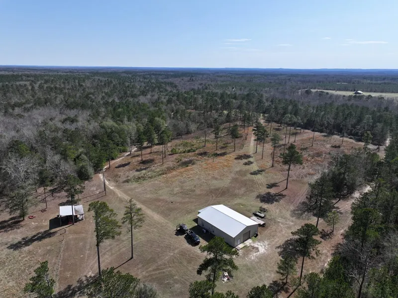 The property is home to a 2400 square foot barndominium, offering the perfect balance of living space and storage. The living area has two bedrooms and a bathroom ready for use. The remaining half of the building is open barn space, providing ample room for storing equipment, tractors, stands or UTVsideal for the outdoor enthusiast who needs room to store their gear.