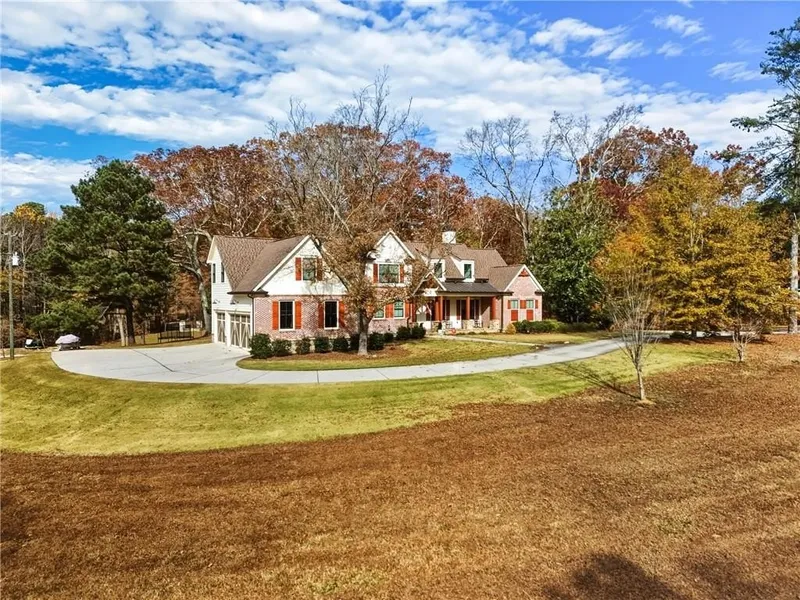 The sellers are truly sad to let this one go. Here's your opportunity to own a 2018-built home on 6 acres in a fabulous location - close to Marietta Square, Barrett Pkwy, and easy access to the Battery and highways. From the welcoming front entrance to the covered back porch, you will fall in love. Primary suite is on main with soaking tub, beautiful tiled shower, dual vanities and custom closet. The open concept kitchen features a farm sink, double ovens, island with microwave and built-in ice maker, 4 burner gas stove with griddle and large walk-in pantry, all flowing seamlessly into the fireside family room highlighted by a stunning cathedral ceiling with wood beams. Main floor also features a dedicated office, mud room, laundry, powder room and exceptional storage, while the upper level provides 3 additional bedrooms and 1 bath. With hardwood floors throughout, a 3 car garage, and room to roam across the expansive acreage, this property offers modern conveniences and serene privacy. All this plus great schools!