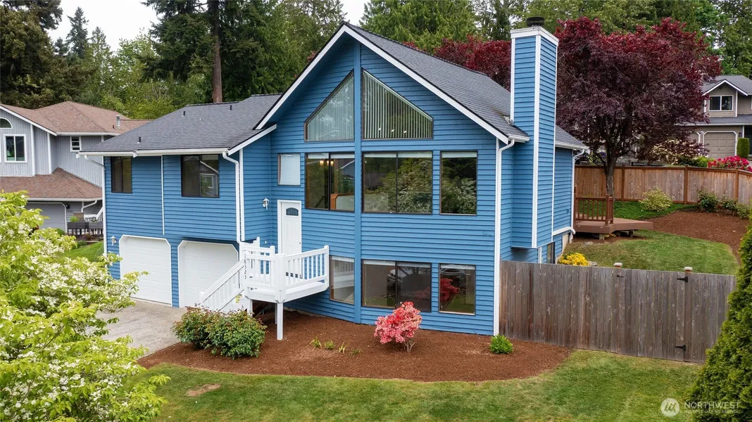 Excellent location in Northshore School District. This fantastic 3 bed/2.75 bath home sits in a great cul-de-sac with a fully fenced backyard. Upper level has soaring vaulted ceilings creating a very spacious environment, the living room has a beautiful wall of windows offering lots of natural light & wood fireplace. The recently updated, gorgeous kitchen offers quartz counters, new cabinets, gas cook top, all new appliances & new hardwood flooring, all with great flow to the back deck & fully fenced private backyard for great outdoor living. Spacious primary w/ ensuite. Lower level has family room, addtl bedroom, 3/4 bath & laundry room. A/C, interior freshly painted, custom quality blinds throughout, 2 car garage w/ extra storage & no HOA