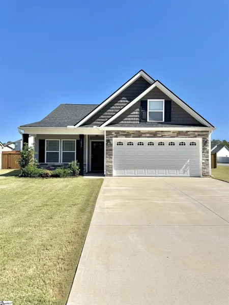 Welcome to Elliott Park! Built in 2022, this home features 3 bedrooms and 2 full baths, situated on a desirable corner lot with a fenced backyard. The open layout connects the kitchen and living room, highlighted by a half-stone fireplace and crown molding ready for inlay lighting, giving the home added potential for custom ambiance.. The kitchen is beautifully designed with stainless steel appliances, granite countertops, a center island, pantry, and dining area. The primary suite offers a true retreat with a tray ceiling with inlay lighting, a soaking tub, separate shower, dual vanity with granite countertops, and a spacious walk-in closet. Two additional bedrooms and a full hall bath with granite countertops provide flexible space, while the dedicated flex/office area is perfect for work, hobbies, or dining. Lots of natural light flows throughout the home, creating an inviting and open feel. Washer, dryer, TV, and refrigerator all convey with the property. Perfectly positioned between Spartanburg and Greenville, Elliott Park is one of Lyman’s newest communities with convenient access to I-85, BMW, GSP Airport, Greer, downtown Lyman, shopping, dining, and schools. Move-in ready, this home blends modern design, thoughtful details, and a prime location.
