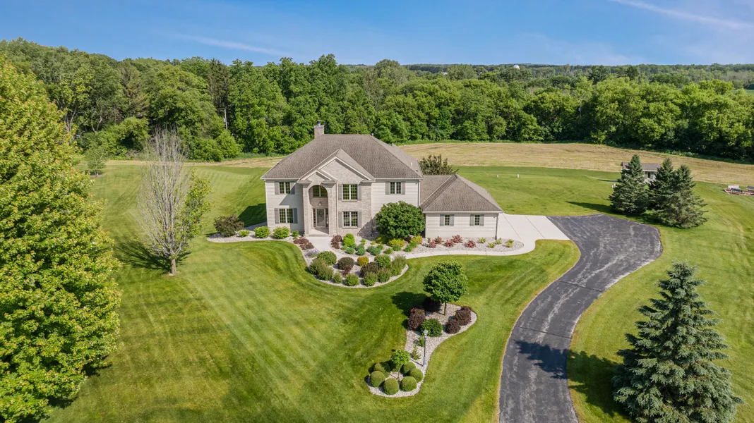 A stunning four-bedroom, four-full bath custom-built residence set on 1.3 acres of beautifully landscaped grounds. As you step through the two-story foyer, you are greeted by serene views of the woodlands. The high ceilings carry over into the family room, where the dramatic stone fireplace is complemented by a built-in wet bar. An open-concept kitchen features hardwood floors, Corian counters, and a pantry. The main floor also includes formal dining and living areas, a guest bedroom, a full bath, and a laundry room. The four spacious bedrooms upstairs include a primary suite separated from the other bedrooms, ensuring privacy. The lower level is an entertainer's paradise, with a spacious rec room, additional wet bar, kitchenette, and theater room. Outside, you'll enjoy a two-tiered outdoor space, including a paver patio with waterfall and a built-in fire pit.