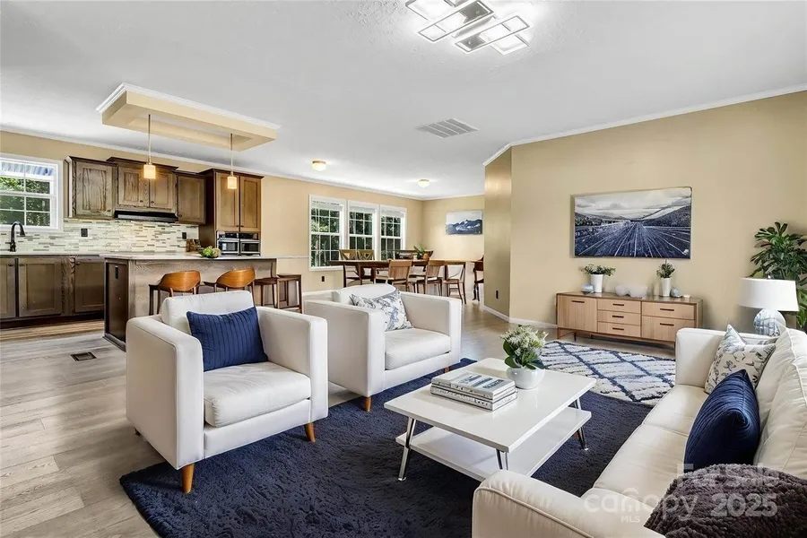 Built in 2019, this well-cared-for home offers 3 bedrooms, 2 bathrooms, and a versatile bonus room on a .29-acre lot just 15 minutes from downtown Asheville. The open floor plan creates a bright and inviting living space, with a spacious living room that flows seamlessly into the kitchen and dining areas. The large kitchen island provides plenty of room for cooking, dining, or entertaining, while each bedroom includes its own walk-in closet for maximum storage. The bonus room adds flexibility—perfect for a home office, playroom, or guest space. Step outside to enjoy a flat backyard, ideal for gardening, play, or relaxing. The large covered back porch extends your living space outdoors, making it perfect for year-round enjoyment. Combining modern design, functionality, and a convenient location, this move-in-ready home offers both comfort and style within easy reach of Asheville’s vibrant downtown.