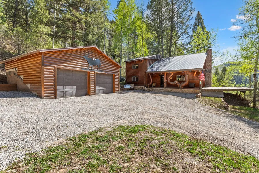 Incredible log cabin which includes two deeded lots bordering the serene Salt River in Thayne! The residence is surrounded by trees at the end of a quiet street just minutes out of town. The views are incredible, and a wrap-around entertaining deck sits perched overlooking the river, ready for your BBQs! Home has three bedrooms with a main level master with laundry, a spacious downstairs bathroom with tub/shower, and two additional bedrooms with a bathroom in the loft. Gorgeous wood details are throughout. Central kitchen and living room with woodstove overlooking the deck and river. A detached garage offers plentiful storage for all your toys with a leveled-out parking area on an additional bonus lot. River property is hard to find!