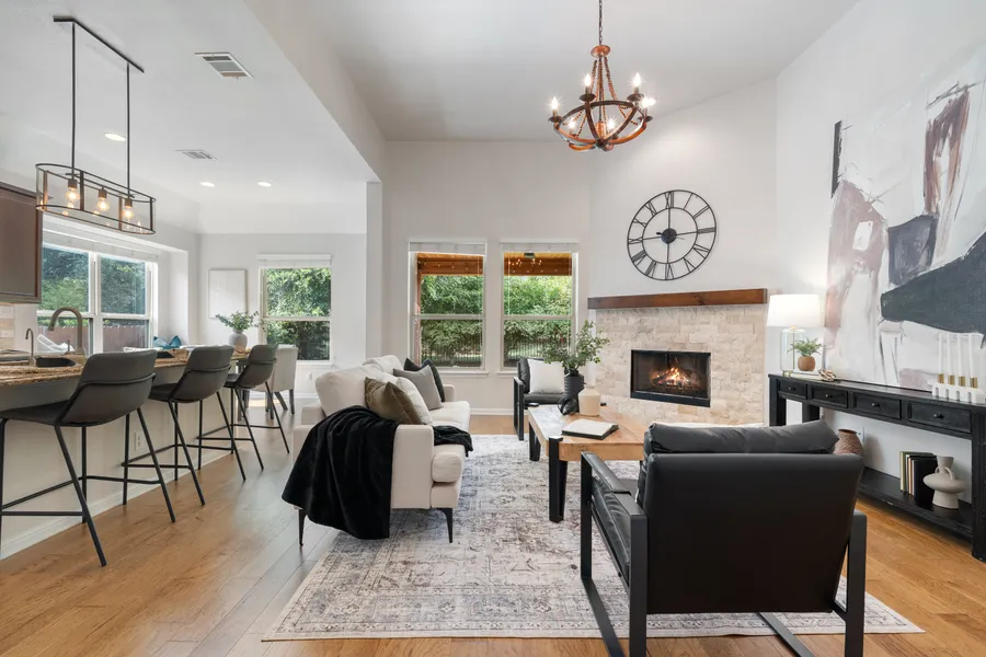 Modern conveniences include a tankless water heater, whole-house water filtration system, and full irrigation. Fresh paint & new carpet throughout. Located in the highly desirable Lake Travis ISD, this home is part of Sweetwater's resort-style community with pools, fitness center, parks, and miles of scenic trails.