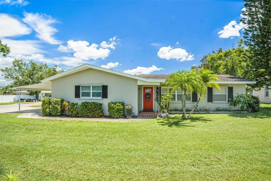 One or more photo(s) has been virtually staged. Sellers Motivated-and ready for a quick sale. Price just reduced $10,000. Bring all your offers on this spacious 4 bedroom/2 bath on a corner lot with an oversized garage + 18 x 18 carport (2023) and room to park a boat/RV/trailer. Large, fenced pet/kid friendly backyard offers space to play/garden and potential room for pool. (buyer to verify setback and permitting) Thoughtful upgrades throughout: new electrical panel & whole house water softener (July 2025), septic pumped/inspected (2024), two double pane hurricane windows (2024) along with custom hurricane panels for the entire house, hurricane rated front door, insulated garage door with hurricane brace and hurricane reinforced gables. Step inside to a bright layout with plantation shutters crown molding freshly painted ceilings (2023). Attic AC ductwork wrapped for comfort and efficiency (2023) Outdoor perks include a rain barrel watering system and new 8' x 12' Wally Watt shed (2022) patio TV and over the air antenna for free local channels. Appliances and extras GE washer and dryer (2022) Frigidaire garage fridge. Location: Clearwater living minutes to beaches/boat ramps/parks/restaurants/shopping = easy commute to work and airport.