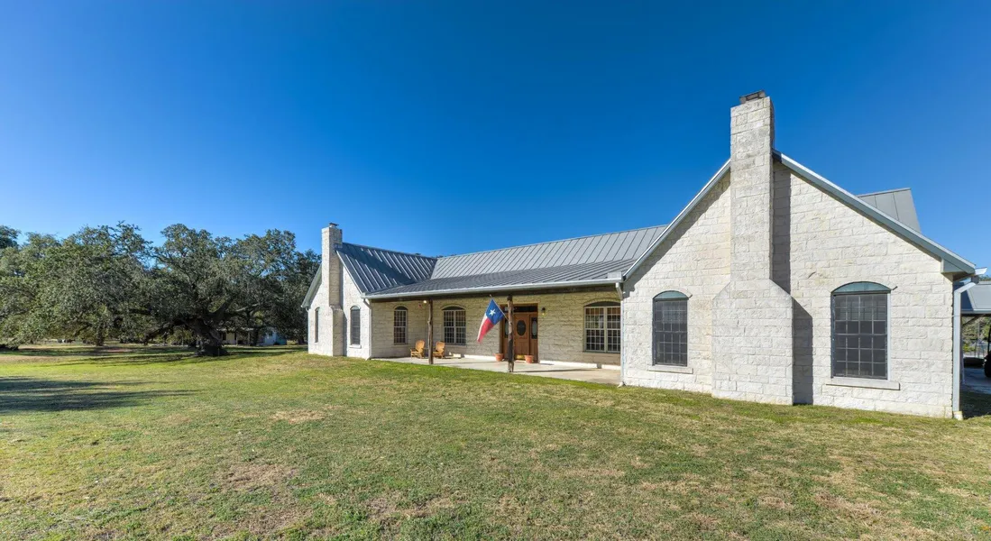 3,664 sqft 3/3 Main house, rock exterior, standing seam metal roof, oak hardwood & tile floors, stone countertops, beadboard ceilings, wood burning fireplace & stove, dry sauna, large bedrooms, large covered front and back porches.