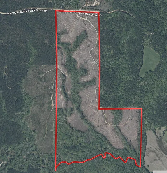 The tract features 116 acres of professionally managed recent replanted pine plantation and 66.5 acres of mature hardwood Streamside Management Zones, forming a vital wildlife corridor along the scenic Blackwater Creek. Elevations range from 320 feet on the ridges to 200 feet in the creek bottoms, providing dynamic topography and diverse habitats for deer, turkey, and small game.