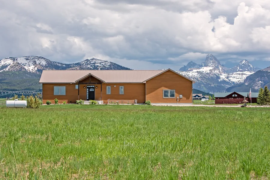 Stunning views from this comfortable and impressive home located in the desirable Teewinot subdivision north of Driggs. This 2,800 square foot home was built in 2019 with 3 bedrooms, 3 bathrooms, a finished basement and attached oversized 2 car garage. Interior features include a woodburning river rock fireplace, knotty alder cabinets, doors and trim, and plenty of windows throughout to let in the fantastic views and fresh mountain air. The large primary bedroom offers a large walk-in closet, excellent views, and attached bathroom with 9 ft glass enclosed shower and large soaking tub perfectly situated to relax and indulge in that picture-perfect Teton view. Enjoy entertaining in the well-appointed kitchen with spacious pantry, plenty of counter and cabinet space, gas range, HE Whirlpool appliances, and a large 9 foot island that flows seamlessly into the large great room. The home was specifically constructed to take in the stunning mountain views and nowhere is this more apparent than within the main living area where the million-dollar Teton view is perfectly framed within the 9 foot sliding glass doors out to the covered patio. There are no close neighbors and exterior living is breeze with a fenced in backyard and timed sprinkler system that were both added in 2020, a large 3 acre lot and plenty of privacy. A new radon system was installed in June of 2023, and the home is also A/C ready if desired in the future. Located just 2.5 miles north of Driggs, there is quick access to Grand Targhee, the conveniences of town, and plenty of outdoor activities in the surrounding mountains. Don't miss the opportunity to own this beautiful home nestled right in the coveted view corridor of Teton Valley.
