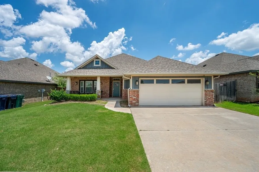 Welcome to this charming Craftsman-style home in the highly sought-after Grove community, known for its extensive trails, catch-and-release fishing ponds, and beautifully maintained parks. Located in the desirable Deer Creek School District, this move-in ready residence offers thoughtful updates throughout, including fresh paint, brand-new carpet, and a completely remodeled primary suite with a spacious bedroom and a modernized bathroom retreat. The flexible layout includes a bonus room that can easily serve as a large fourth bedroom, home office, or second living area. The open-concept living and kitchen space flows beautifully, perfect for daily life or entertaining guests. Enjoy the added convenience of a sprinkler system and the security of an in-ground storm shelter for peace of mind during Oklahoma weather. Outdoors, the backyard is ideal for relaxation or play, with a playset, swingset, and trampoline—all of which can stay or be removed before closing based on buyer preference. The home faces West, offering shaded backyard evenings perfect for winding down the day.