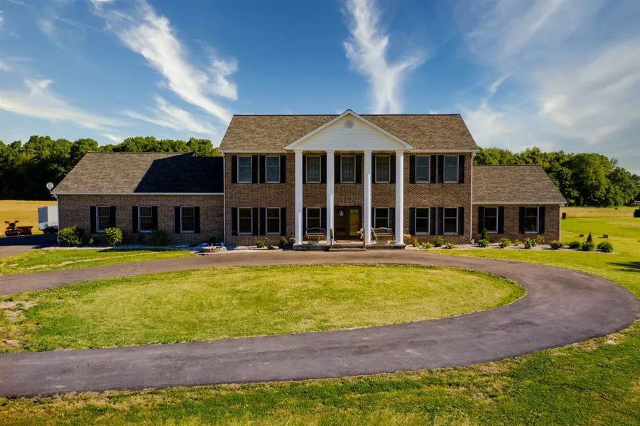 Georgian style Estate property on almost 20 acres! All freshly painted 5 bedroom, 4 Full/ 2 Half Baths, over 4,200 finished sq ft with additional 2,600 unfinished basement, 3 car garage with extra high overhead doors, oak floors in all living and bedroom spaces. Main level has large open foyer with 20' ceilings, double staircases leading up to the 4 extra large bedrooms 2 of which have large walk-in closets. Full newly remodeled bathrooms are at each end of the 35' hallway and central to all upstairs bedrooms is the 11x5 linen closet. Main level living space is centrally located overlooking the inground pool complete with basketball hoop and diving board!! To one side of the living space is the gourmet kitchen that will make any chef happy! Double convection ovens, jenn-air gas cooktop with griddle, corian countertops, custom oak cabinets, built-ins, wet bar sink, and built-in desk. Remodeled 1/2 bath and mudroom are just past the kitchen with easy pool access. Formal dining room with an exquisite crystal chandelier is steps from the kitchen for ease of entertaining. On the other end of the main level are the study ( 6th bedroom) conveniently located across the hall from the 2nd main level full bathroom. Master Bedroom is also on the main level and has 11x8 walk-in closet with multiple custom built-in dressers. Bathroom has double vanity, soft close doors and drawers, custom cabinets, soaking tub with separate shower. Basement houses the WaterFurnace geothermal system with 2 zones, 2 water heaters, is plumbed for additional full bathroom, extra staircase leads from garage to unfinished basement,