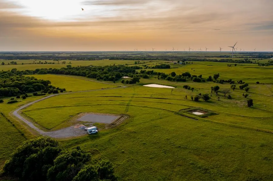 With the eased drive to the property, exit off I-35 at mile marker 141 and continue on the paved Road 175 and turn north on Road Y. Within 1 ½ mile the property is located on the east and holds a secluded driveway entrance. Head up the long driveway and take notice of the design and thought that went in with the culvert and water hydrant placement throughout. With a solid base and well-conformed top layer, this driveway will be low maintenance for a long time to come. Over 2,700 feet of water line has been run to the hydrants and pad. Off to the north sits the newly built pond with a spillway that flows into the creek. Continue on back towards the build pad and you are now at the prime site for incredible 360-degree views that catch every beautiful Kansas sunrise and sunset and any storms that roll in from the south. The 60’x100’ pad was recently constructed by a top-tier contractor and has reached its curing stage and is ready to be built upon. The options are endless from a barndominium to slab home to shop, whatever direction you go, the improvements are in place. With the seclusion and peace and quiet, anything built on this location will be incredible! Lagoon was recently established to Lyon County Health Department code and address change and survey recorded with Lyon County zoning.