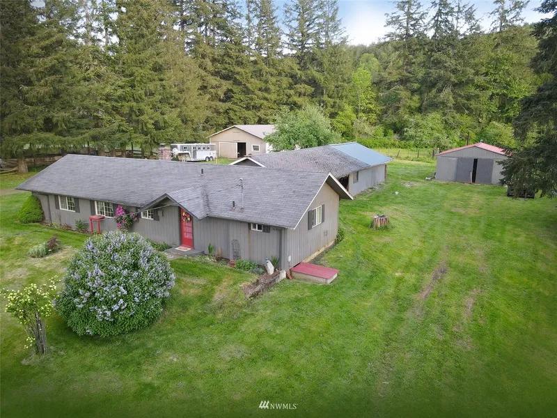 Love horses - or perhaps just peaceful space? Take a look at this quiet country rambler! 4.83-acres of equestrian potential adjacent to forest land. The charm is here and so are the outbuildings! 50x60 covered arena, 62x36 barn 10-stalls, tack room, wash rack, 22x24 machine shop, 24x64 carport & add'l workspace. Fences & some features need your help getting back in shape. 18 horses breeding operation in it's heyday! House is 2 bed, 1 bath plus 1/2 bath off master, cozy wood fireplace insert. Centrally located between Seattle and Portland, come take a look!