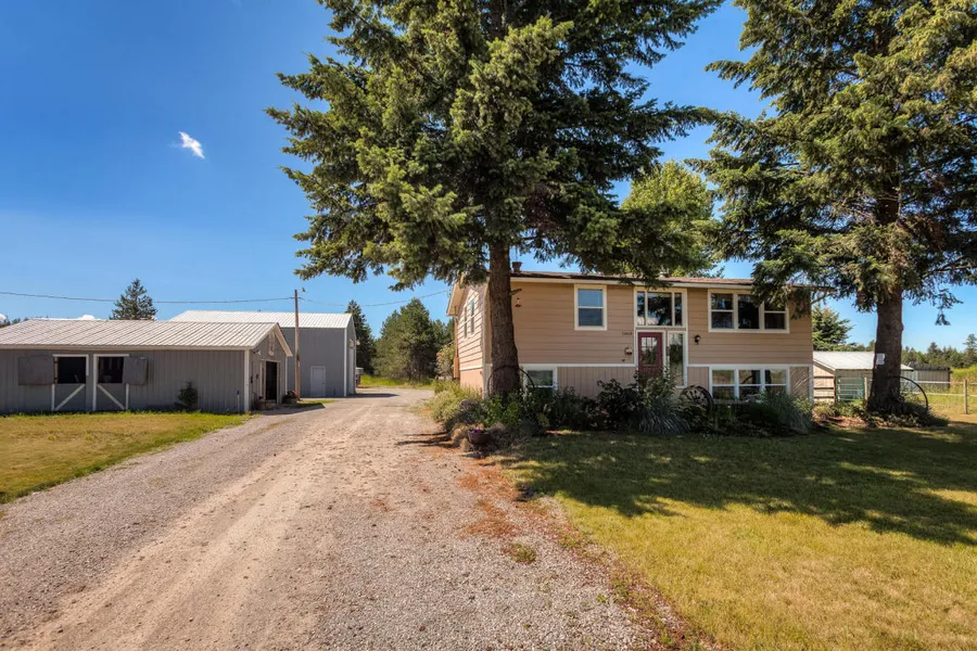 Enjoy the country feel, just minutes from town. This beautiful home sits on 5 park-like acres perfect for your horses with cross-fencingand a 60x90 fenced arena. You'll have plenty of room for all your toys with the huge wrap around driveway. Outside you'll fall in lovewith the garden area, heated 2-stall 26x31 barn that connected to the heated & insulated 30x40 shop by another building that is26x17. Inside the home you'll find 4 bedrooms, 2 updated bathrooms, newer downstairs carpet, new pellet stove, a spacious kitchenand open living space. Relax and entertain on your large wrap around deck. Call for your private showing today!