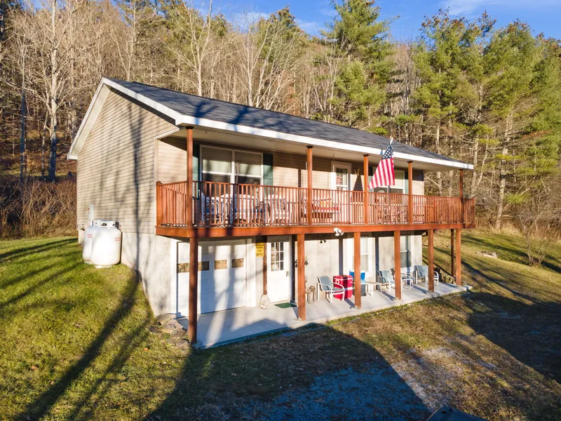 Built in 2005 this private Raised Ranch is move in ready. All furnishings included. Finished family room down stairs. 3 parcels being sold together totaling 10 acres.