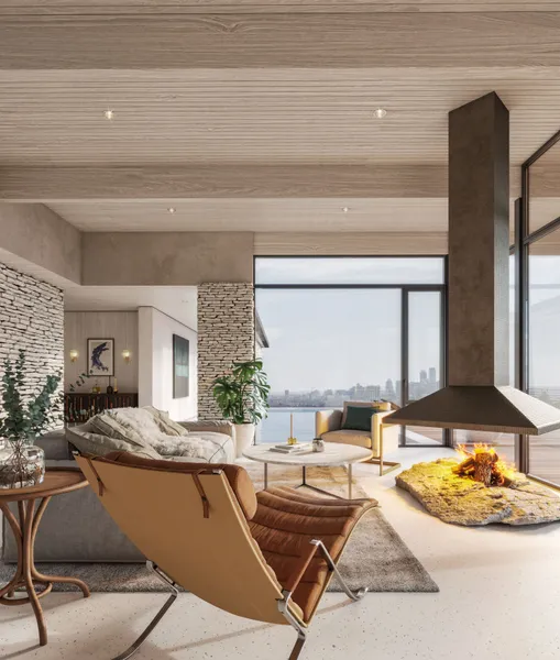 The architectural vision embraces mid-century modern aesthetics while honoring the natural beauty of its Hill Country setting. Floor-to-ceiling windows frame breathtaking downtown vistas, while thoughtfully designed spaces allow abundant natural light to flow throughout. The plans feature a harmonious blend of calming, native materials that create a seamless connection between indoor luxury and the surrounding landscape.