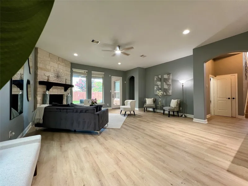 18718 Fairmont Springs Court is a beautifully maintained and move-in ready home in the desirable gated community of Villages of Cypress Lakes. Built in 2016, this Cypress, TX home for sale boasts soaring ceilings, fresh interior paint (including ceilings) and upgraded luxury vinyl plank flooring throughout the main living areas, stairs and game room. The open-concept floorplan features a cozy gas-log fireplace, modern kitchen faucet, updated lighting fixtures and a professionally extended covered patio—perfect for outdoor living and relaxation. Enjoy added privacy with no rear neighbors! Key Features 5 Bedrooms - 3.5 Bathrooms, Gated Community in Cypress, TX, Luxury Flooring, Fresh Paint, Extended Covered Patio & No Back Neighbors, Zoned to Top-Rated Cypress-Fairbanks ISD, Nearby Trails, Parks & Cypress Lakes Golf Club Conveniently located near major highways, grocery stores, shopping centers, medical facilities and restaurants, a combination of comfort, convenience & style.