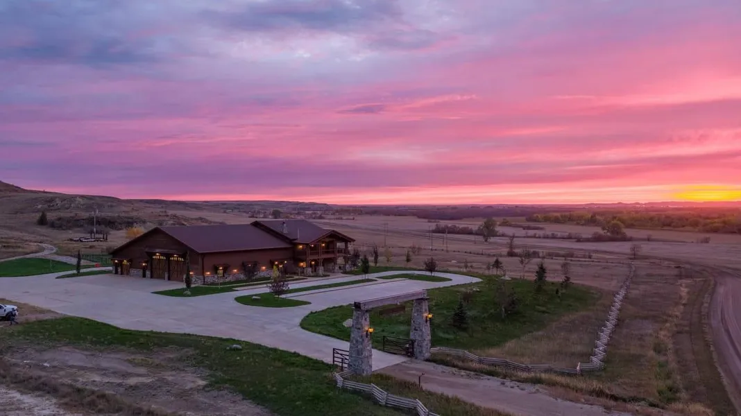 The River Ranch is located just SW of Williston ND. This home is one of kind with 2 master suites, one on each level. Enjoy the beautiful view of the Missouri River that is lined with tree cover for wildlife. Situated on 1879 acres with tillable acres and the rest being fenced. The home features beautiful woodwork, heavy beams and custom touches throughout. The great room has a nice, open floor plan. The living room features a gas fireplace extending to the ceiling with custom stonework. Walk out to the covered stamped patio from the living room. Entertain in the large kitchen which has 2 gas oven and cooktops. a butler pantry and a huge island that sits 6 easily. The loft area has a great area for relaxing, a nice office, and access to the deck to take in the stunning view. Enjoy entertaining in the basement that has a pool table/game room, theatre room with projector and a full wet bar! The unique part of this house is the safety/panic room/tornado shelter. The doors are solid steel and the room has a full bathroom show. It also has its own water storage system and a ventilation port in case power goes out. The heated, attached garage which easily fits 6 cars. The garage also has a bathroom with a showering area which is a convenient area to wash pets, etc,. Walk through the double doors to another wide tandem bay that you can store boats, side by sides and motorcycles if you want or more vehicles. The property has buried propane tanks. There is an extra shop located just south of the house that is great for storing yard equipment or horse tack. This property has a diverse type of terrain that allows wildlife to make this place a home. You will see whitetails and Muley's on the tillable flats or the buttes to the deep ravines. You will see the moose venture out across the flats as the Canada geese make their nests. The ravines are loaded with upland game as well the pheasant and grouse hiding in the grasses and the thick brush. This stunning property would also be great for an executive retreat, In addition, there is another foundation up on the hill that is ready to be built on. There is an additional shop that is fenced in as well. The entire home is run off a Lutron lighting system. This property is one of a kind and a short trip to Williston and Watford city and nearby airports. Recreational opportunities galore within an hour.. Theodore Roosevelt Park, Medora and Bully Pulpit Golf Course or test your skills the Maah Daah Hey mountain bike course. Lake Sakakawea is also close to enjoy some of the best fishing in North Dakota and boating activities for you and the family