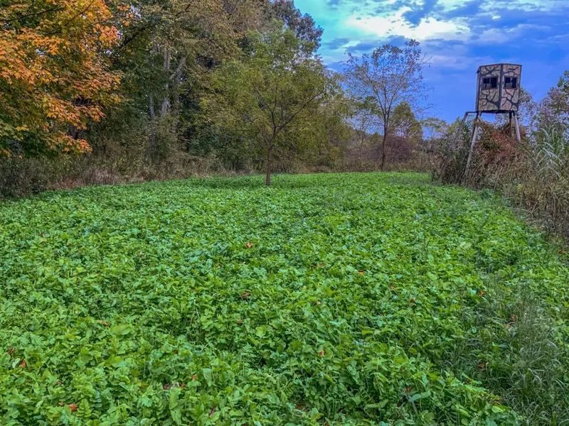 188+/- acres for sale in Muskingum County, Ohio. Located in beautiful northern Muskingum County, this 188-acre property is ready for you to take the keys and have some fun. For starters, the scenic drive to the property will get your mind in the right place because once you arrive at the quaint cabin that resides on the property, decisions will have to made whether to just relax in the stillness or go to the field. If relaxation is what you're in search of, sitting on the front porch watching wildlife will fit that bill. But, if you're in search of the elusive whitetail, well, without a doubt this is the property's strong suite. This property has been managed for the last 6 years under a strict Quality Deer Management program and it shows. The thought process that went into the strategically placed food sources that are designed to attract those big bucks is quite impressive and will be easy to follow for the next owner. These food plots are far from your normal food sources, they are designed to make them a stress-free environment with perennial screening such as Miscanus and annual screening of Egyptian Wheat to assist you getting in and out of them. As a bonus, they also offer early sessional cover around the food plots to offer a more diverse food source and help out with limiting the amount of pressure to ensure that they won't be burnt out. Amongst the bigger quality feeding areas, there are several staging areas to give you just more options to pursue game. To make things even better, placing stands will not be a problem because quality box blinds will already be there for you to just climb up and enjoy. Accessing the property and all that it offers is not of any concern for ATV trails are throughout the property. Timber that resides on the property ranges from mostly pole in size, but those wooded areas offer quality bedding and nesting that wildlife are in search of. Topography is rolling to mild in slope with access to the scenic Wakatomika Creek. With an easy drive from Columbus, within roughly an hour, you will arrive at a place you have been only dreaming of.