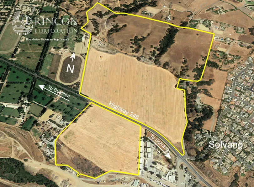 Located at the western gateway to the Danish town of Solvang, the Property is located on both the north and south side of Highway 246 in an area renowned for its premium wine vineyards and horse farms. Consisting of approximately 188 acres, roughly 80 acres are located in the mesa area overlooking the 108 +/- acres of farmland below. The mesa area commands extensive views of not only the farm land below, but also the Santa Ynez River and the mountains behind it. The mesa area is comprised of three different potreros, or meadows, divided by deep ravines that host dense stands of oak trees. The mesa area provides many fantastic possibilities for a homesite with exquisite views, as well as additional planting acreage for premium vineyards.