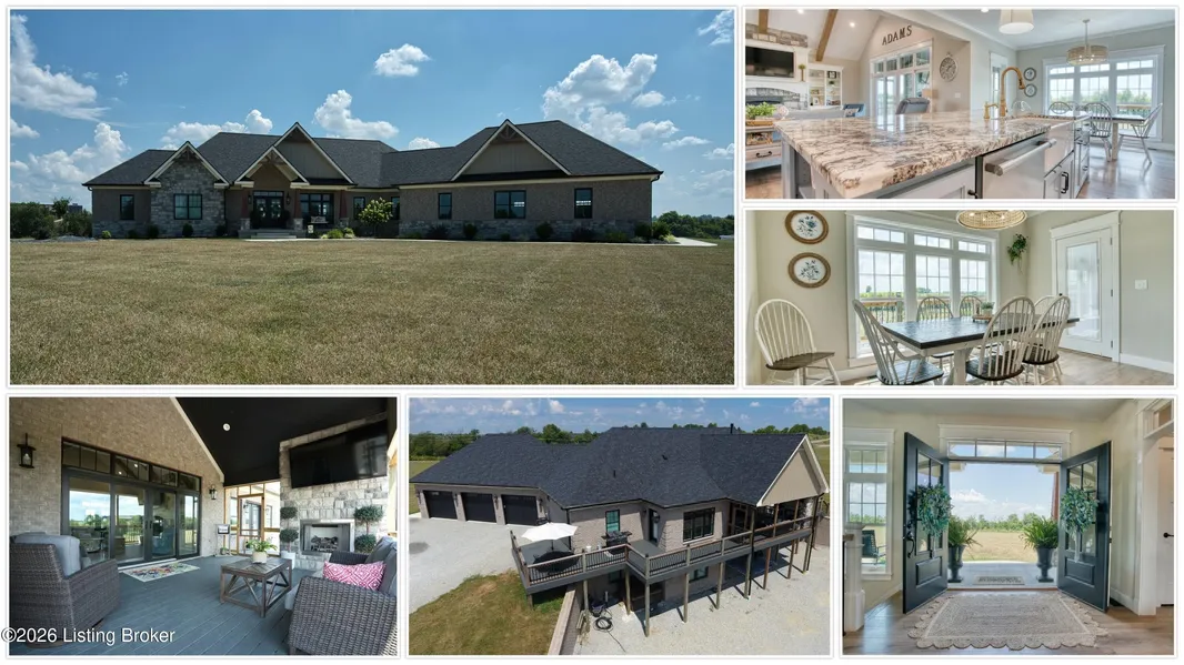 YOUR DREAM PROPERTY AWAITS! INCREDIBLE HOME PERFECT FOR THE SMALL FARM AND/OR SMALL BUSINESS. ENJOY QUIET TRANQULITY AND PRIVACY! Rare gem that redefines luxury living in this stunning, 2-year-old custom-built home nestled on 12.5 acres of breathtaking countryside. Far from ordinary, this residence blends unparalleled curb appeal, upscale finishes, and a versatile floor plan designed to captivate and inspire. With a finished walk-out basement, a 3-car attached garage, and a setting that exudes tranquility, this home is the epitome of modern elegance and functionality. Unrivaled Curb Appeal & Thoughtful Design: From the moment you arrive, the home's striking exterior commands attention, with its contemporary color palette and meticulously curated landscaping that seamlessly blends modern trends with timeless sophistication. Step inside, and the open-concept great room will take your breath away. Bathed in natural light, this expansive space radiates warmth and serenity with its vaulted ceiling, adorned with natural wood cross-beams, and a show-stopping cobble stone fireplace that anchors the room. Perfect for hosting unforgettable gatherings, the great room flows effortlessly to a covered deck showcasing jaw-dropping views of the rolling countryside - a host's dream come true. A Gourmet Kitchen That Steals the Show: The chef-inspired kitchen is a culinary masterpiece, designed to impress and perform. Anchored by a massive breakfast bar with unique, stunning granite countertops, this kitchen boasts professional-grade double refrigerators, double stack ovens, a spacious pantry, and a charming coffee nook. Whether you're preparing a feast or sipping morning coffee, this space keeps you connected to the conversation while offering unmatched style and functionality. Luxurious Bedrooms & Spa-Like Retreats: This home features four oversized luxury bedrooms, each with its own private, exquisitely designed bathroom, ensuring every family member enjoys their own personal oasis. The primary suite is a sanctuary of sophistication, with a boxed-tray ceiling, sweeping views, and direct access to the deck for serene mornings or tranquil evenings. The primary bathroom elevates relaxation to an art form, featuring a double "tall-boy" basin, an immense custom shower room with dual showerheads, a built-in bench, and a sunlit window above. The accompanying walk-in closet/dressing room transforms daily routines into a refreshing experience. Versatile Spaces for Every Lifestyle: On the main level, Bedroom 2 doubles as the perfect home office, conveniently located near the kitchen. The nearby laundry room and mudroom are designed for ultimate practicality, with a built-in bench, cubbies, shoe slots, and coat hangers - ideal for busy households. Downstairs, the finished walk-out basement is where the fun begins. Create your dream home theater, gym, family room with wet bar, or recreational haven. Two additional spacious bedrooms with full bathrooms and a rock-solid storm shelter provide comfort and peace of mind. A Lifestyle of Luxury & Serenity: This home is more than a residence - it's a lifestyle. With its expansive acreage, cutting-edge amenities, and a location that balances rural charm with modern convenience, this property is a once-in-a-lifetime opportunity. Perfect for those who demand the best in design, space, and functionality, this estate is ready to make your dreams a reality. Don't Miss Out - Act Now! Homes of this caliber don't last long. Call your Realtor today to schedule a private tour and experience the unmatched beauty and versatility of this extraordinary estate. Your forever home awaits!