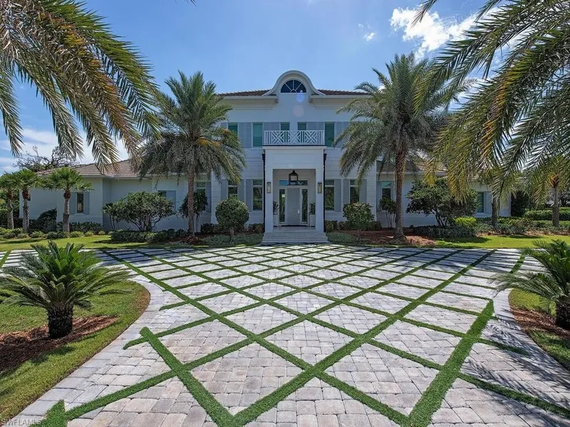Situated in prestigious Pine Ridge Estates, this exceptional residence epitomizes luxury living. Set on a sprawling 1.72-acre corner lot with two driveways and lush landscaping, the home features a gourmet kitchen with Sub-Zero and Wolf appliances, Quartzite island, walk-in wine cellar, and abundant custom cabinetry. The dramatic living room boasts 27-foot ceilings, a sleek wet bar, and seamless indoor-outdoor flow. A formal dining room overlooks the expansive backyard oasis. The elegant primary suite offers dual walk-in closets and an opulent en-suite bath with soaking tub, walk-in shower, dual vanities, and abundant natural light. A stylish den provides a serene workspace. Upstairs, four spacious bedrooms are accessible via a private elevator or twin staircases, along with a cozy family room, loft, and second laundry area. Outside, enjoy your private resort: a 24' x 43' pool with sun shelf and spa, outdoor fireplace, full cabana kitchen, and covered lanai perfect for entertaining. The climate-controlled 5-car garage offers ample storage. Just minutes from Mercato and a short drive to Waterside Shops and downtown Naples, this refined estate is the ultimate dream home.