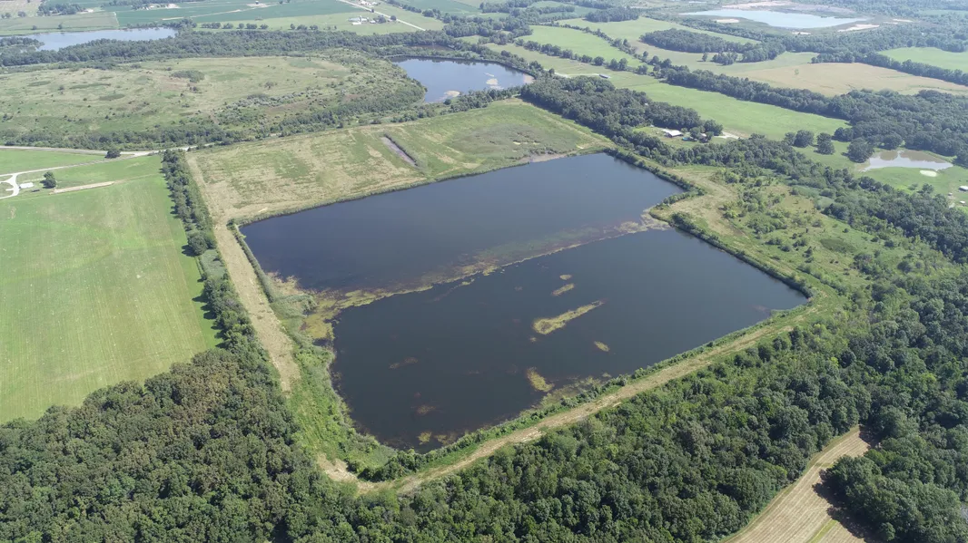 Tract II - 142.017 Surveyed Acres. This parcel has a 50-acre lake, which varies from 4-18 feet deep. A large area of the lake is 4-6 feet deep, making this a great water fowl property. The location (1 miles directly west of Rend Lake) enhances the waterfowl hunting prospects as waterfowl frequently transition from Rend Lake to this property. The area around the lake is abundant with deer, as paths have been worn throughout the property. The area in the southeast corner of the property makes an ideal wildlife habitat. Survey has been complete, selling surveyed acres...