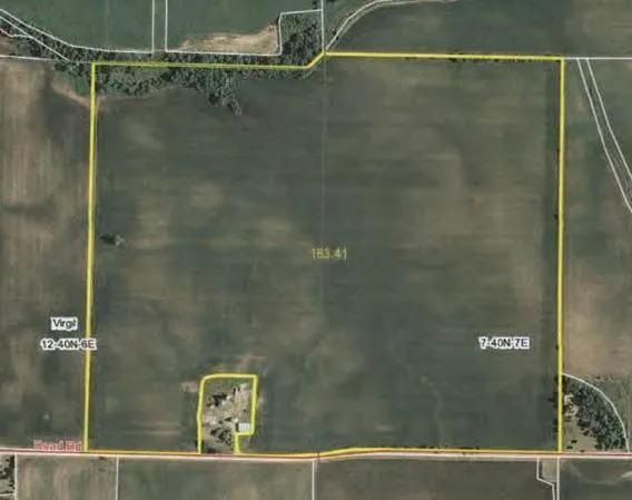 Property includes a 3 BR-1BA dwelling, two sheds, a silo and a concrete corn crib.