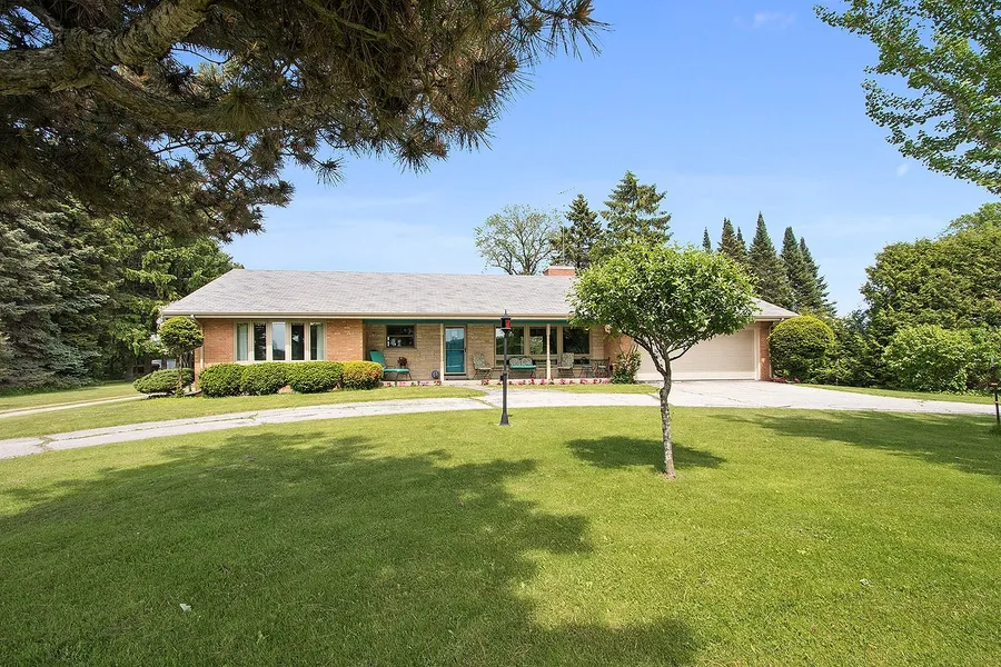 JUST OUTSIDE THE CITY LIMITS of Manitowoc is this beautiful ALL brick ranch home originally built in 1963 with a long list of updates PLUS extremely well maintained. LOVE the front porch to watch the seasons change or decorate for the holidays...NICE STONE BACKDROP! Slate tiled foyer opens to a comfortable living room w/floor to ceiling window & a 3-way stone floor to ceiling FP along w/built-in bookshelves. Formal dining w/built-in hutch, great counter & cabinet between kitchen & dining area. Off dining w/double doors is a bedroom or use as a family rm or den. Enjoy solid surface counters in the kitchen as ALL APPLIANCES STAY! Full bath w/long counter & nice shower. Expansive master suite w/large picture window, 2 double closets & a half bath w/more closet space. Convenient half bath w/closet off the back door. LL has rooms to store items or finish to your liking. In-floor heating in the garage...LOVE IT! Heated 26x40 bldg w/walkup loft & 16x32 addition for extra storage. Additional 18x24 bldg. Gorgeous country views along w/a partially wooded backyard on 3.5AC. Some updates include: windows, gutters, gas stove top, flooring, counters & more. PRE-CERTIFIED.