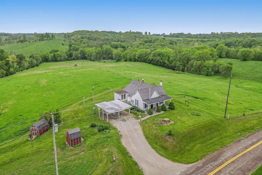 Sixty acres of picturesque rolling hills and fresh air - a perfect setting for your dream home, secluded wedding venue, or equestrian facility. Located 15 minutes from Historic Weston, MO and 35 minutes from the airport. Two parcels being sold together with 8 acres in Buchanan County and 52 Acres in Platte County.The perimeter fenced land on asphalt offers 20 tillable acres with tree lined Goose Creek trickling through providing a draw for wildlife. There is electricity to both outbuildings - 49x41 tobacco barn with 16x12 stripping room and 37x39 wood framed open barn, both barns are in good condition. Equipment/machinery in the barns/fields will not stay with the property. The home on the property is 1175, 2 bedroom/1 bath, dining room, living room and kitchen with public water, electricity and septic. ** Cross-posted in residential under MLS #: 2422465