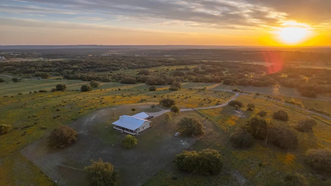Located on the highest point, with 360-degree views, is a super gorgeous +/- 1,650 sf home built in 2006. This above average home is immaculately built with the intended use of a weekend home but could also serve a primary residence or guest home to a future residence. Built with white Texas limestone, a two-car garage and a metal roof, the home sits on the highest point on the property and features amazing views in all directions.