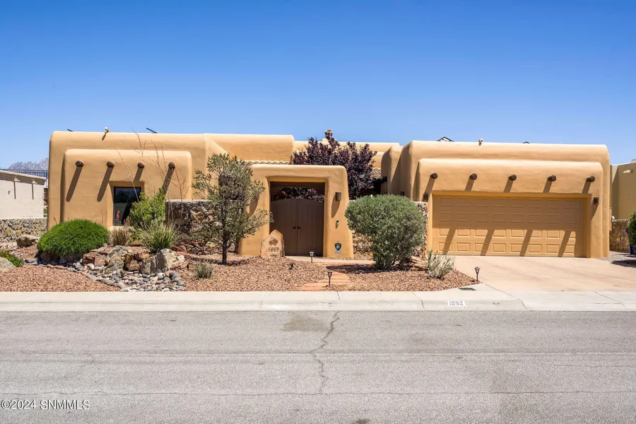 Nestled along the 7th fairway, this quality, custom built home is sure to impress. Enter the entrada courtyard with wooden gate. Gourmet kitchen features Wolf and Subzero appliances, solid wood custom cabinets, granite and tile mosaic backsplash. Walk-in pantry and stacked stone bar. Living room boasts a stacked stone fireplace, viga and tongue in groove ceilings, surround sound, 8 foot windows and an extraordinary view of the Organ Mountains. Formal dining and casual breakfast nook. Master suite features kiva gas fireplace, built-ins, 5 foot windows with views, jetted tub, 5 x 6 shower with dual heads, dual vanities. Huge walk-in closet with built ins. Split floor plan with 2 bedrooms, each with its own bath. Pella windows throughout, custom wood blinds, ceiling fans, custom tile and woodwork. Enjoy the beautiful landscaping with fountain on the back patio with built-in grill, Bluetooth audio, TV hookups and sink and finished upper terrace with 360 degree views.