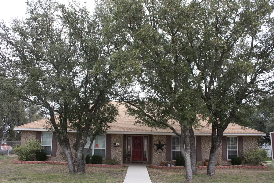 Beautiful 4 bedroom, 2.5 bath home featuring 12ft living room ceilings, large foyer, office. Living room,kitchen, dining room are open concept. Fireplace-wood or gas. Master suite has 10ft ceilings, double vanity, garden tub, glass enclosed shower, his-her walk-in closets. Covered front and back porches, 2-space carport, large storage, 20 x 30 shed, 40 x 40 barn, pipe fence, stocked tank(has never gone dry)all surrounded by beautiful live oaks. Washer-Dryer and all kitchen appliances all convey.City utilities. To view this property, call the Wells Team at 325-642-2489.