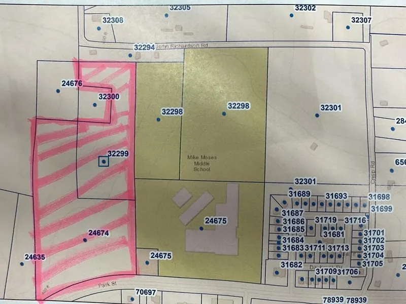 19+/- Acres Zoned General Business next to Mike Moses School on Park Street. Level acreage with some marketable timber.