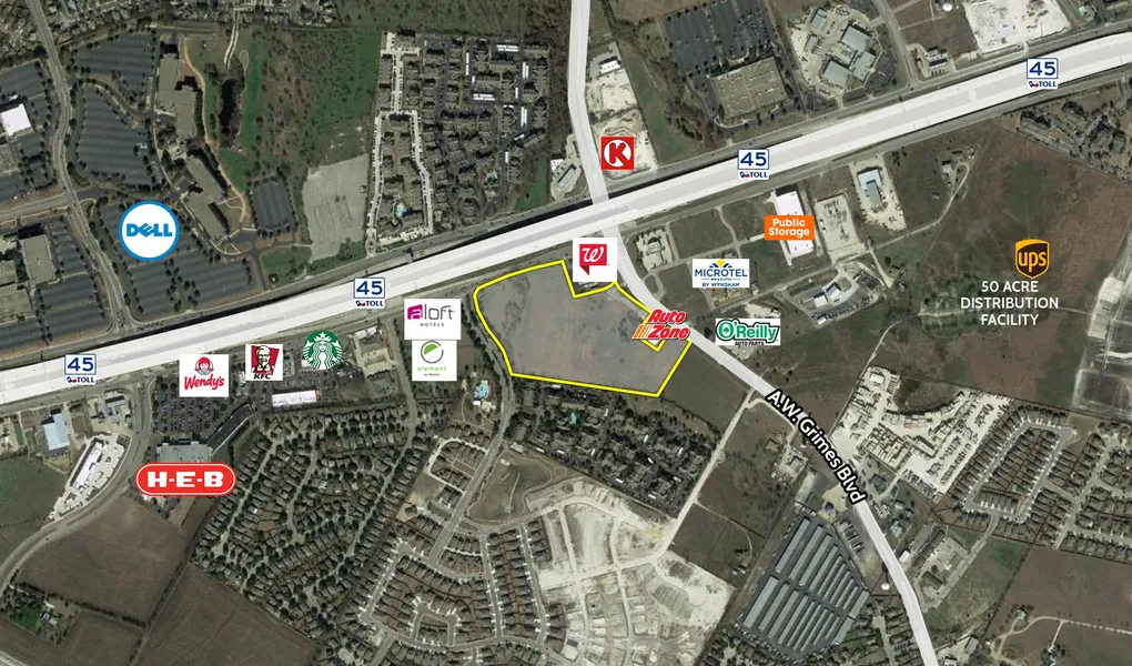 A.W. Grimes Blvd. and the SH-45 frontage road